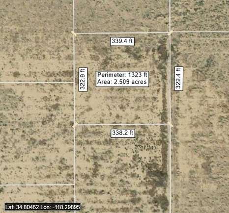 Est $139/mo2.51 acre lot in Antelope Acres. Zoned A12 for agriculture and horses. APN 3262-011-016.