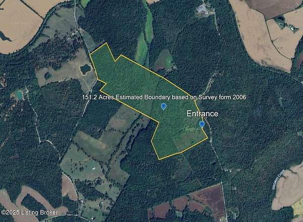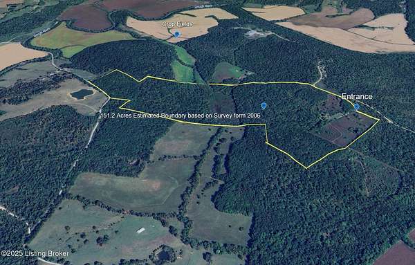 Hunting Retreat & Secluded Home Site - Discover 151.2 surveyed acres with approximately 25 acres of overgrown fields that can be cleared. An old house on the property offers a great opportunity for a rustic hunting camp, ideal for weekend getaways or future renovations. Located minutes from Rough River, this land provides both seclusion and accessibility. Owensboro, Bowling Green, and Elizabethtown are a short drive away, with Nashville just two hours out. With frontage on Long Cane Ford Rd (457') and Cane Ford Rd (269'), access is convenient, making this a perfect spot for recreation, investment, or a private retreat. So many possibilities !!! Very nice property