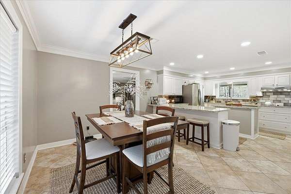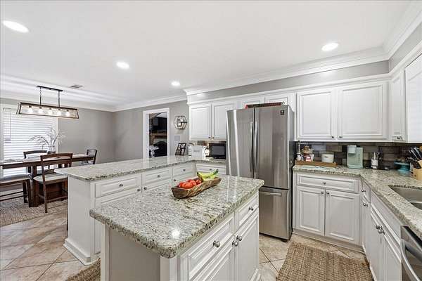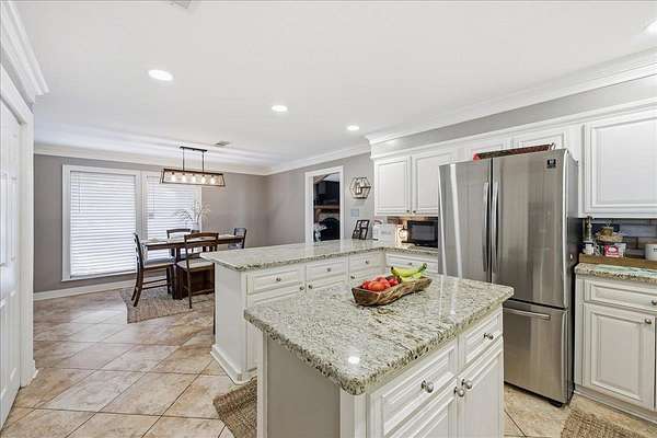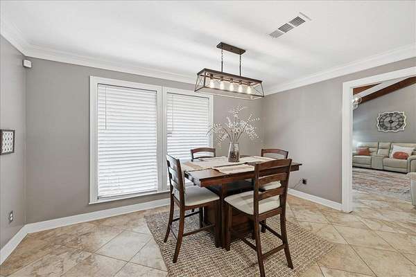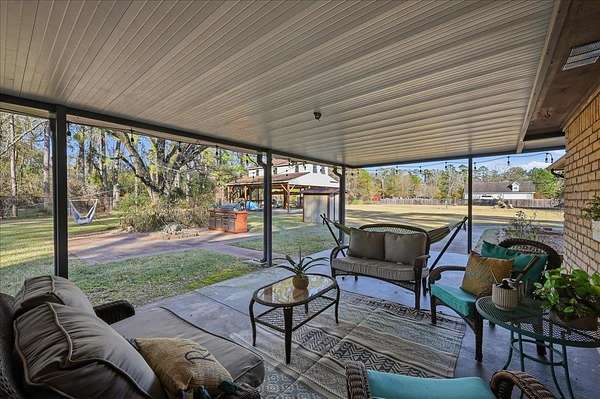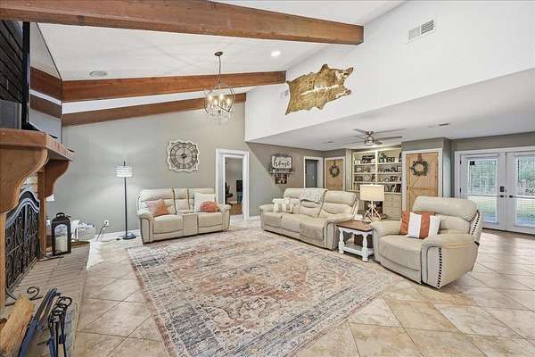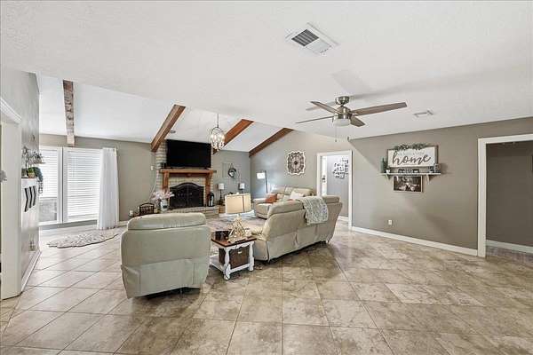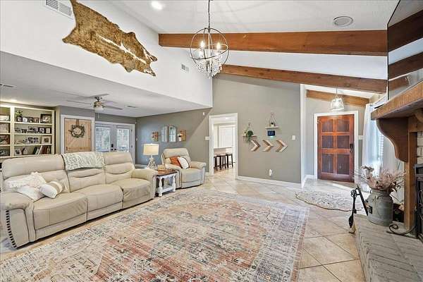 Welcome to 1025 Strickland in the desirable Maplecrest neighborhood, located in Vidor ISD. This 3-bedroom, 2-bath home offers nearly 2,000 sq ft of comfortable living space on 1.5 peaceful acres. Solid-surface flooring throughout--no carpet--creating a seamless and timeless feel. The updated kitchen features granite countertops, double ovens, electric cooktop, a spacious center island, and a bright breakfast room. The living area is warm and inviting with a fireplace, custom built-ins, and generous storage. French doors lead to a large covered back patio, perfect for relaxing or entertaining. The primary suite includes patio access, a walk in closet with built ins, vanity, linen storage, and a private toilet and shower room. Additional features include a 2 car garage, oversized covered RV parking with a large storage room above, fenced in yard, covered front porch, and an artesian well. Schedule your tour today