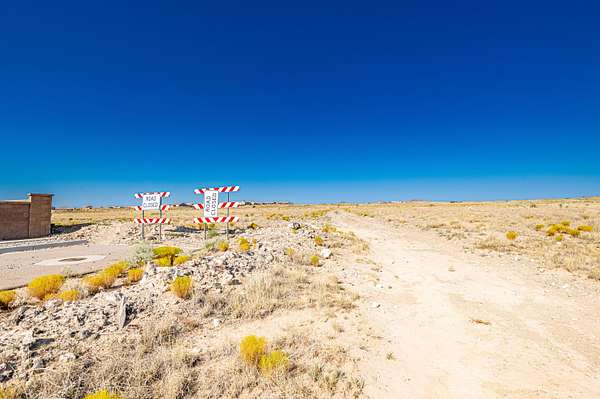 From Unser and Molton Rock turn west on Molton Rock, turn right on Vista Del Sol Dr., turn left on Groundsel Rd, turn left on Mete Sol Dr., quick right on Groundsel Rd (short street), right on Abierto Vista Cir, right on Tierra Oscura St. which will turn into Villa Real Rd. You will see a dirt road off to the right which you can follow till you come to the sign on the lot. Or you can enter Villa Real Rd on your GPS and it will take you to the dirt road. You should be able to see sign from rd