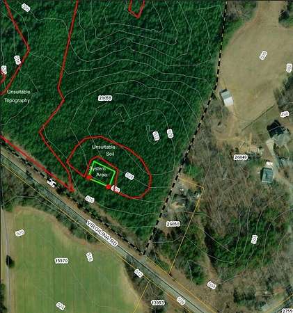 Beautiful 87.39-acre tract in Halifax County, VA, offering approximately 1,200 feet of road frontage on Virgilina Road. Zoned Agricultural (A-1), this property allows flexibility for residential, recreational, farming, or investment use. A recent survey has been completed and property lines are clearly marked. A site and soil evaluation was performed in accordance with Virginia onsite wastewater regulations, indicating red clay loam soils extending 48-60 inches deep and suitable for a 3-bedroom conventional septic system. The land features a strong mix of uses with approximately 66.2 acres of evergreen forest, 15.26 acres of mixed forest, 2.29 acres of open space, 0.57 acres of pasture or hay, and 0.38 acres of shrub and scrub. A professional timber cruise completed June 20, 2023, estimates a total timber value of approximately $39,978, including sawtimber and pulpwood, offering immediate and future income potential. Ideal for timber management, hunting, recreation, or future homesites. Conveniently located near South Boston (20 miles), Clarksville (22 miles), and Durham, NC (58 miles). A rare opportunity to own a large tract with documented timber value in scenic southern Virginia