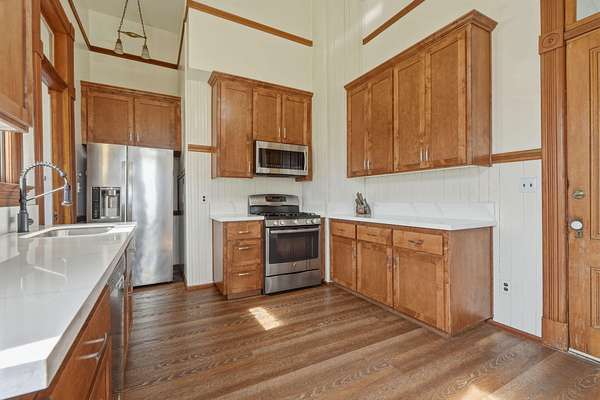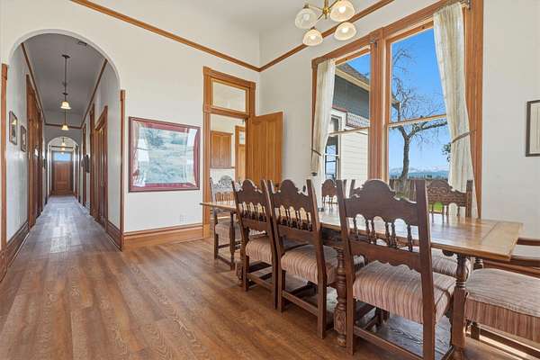 Unique Multi-Residence Country Property with Sierra Nevada Views Rare opportunity to own a gated and fully fenced country property featuring three separate residences, ideal for multi-generational living, rental income, or investment use. Situated in a peaceful rural setting with picturesque views of the Sierra Nevada mountains, this versatile property offers privacy, space, and multiple housing options on one parcel. The main residence is approximately 3,000 square feet and includes 7 bedrooms and 2.5 bathrooms, along with a spacious kitchen, formal dining room, foyer entry, and living room designed for comfortable daily living and large gatherings. The property also includes a 420 square foot guest unit, complete with its own kitchen, dining area, bedroom, and laundry, making it well suited for extended family, guest accommodations, or additional rental income. A separate 1,750 square foot residence features 2 bedrooms and 2 bathrooms, plus a living room, dining area, laundry room, and pantry/storage closet. This additional home offers excellent flexibility for long-term tenants, caretaker housing, or owner occupancy while renting the other units. The grounds feature expansive lawns, mature landscaping, detached garage structures, and covered parking, all set against scenic agricultural surroundings and mountain views. The gated entry and fencing provide added privacy and security. This unique property presents a compelling opportunity for buyers seeking a multi-unit rural compound with income potential, space for extended family, or a flexible residential investment property.