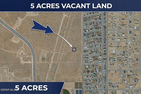 Est $3,736/moPrime 5-acre vacant land opportunity in a rapidly growing area of El Paso. Ideal for future development, investment, or building your custom dream property. Conveniently located near established neighborhoods with expanding infrastructure nearby. Plenty of space, potential, and opportunity--don't miss this rare offering. Lot is near Berryville, Windermere, and Joe Battle