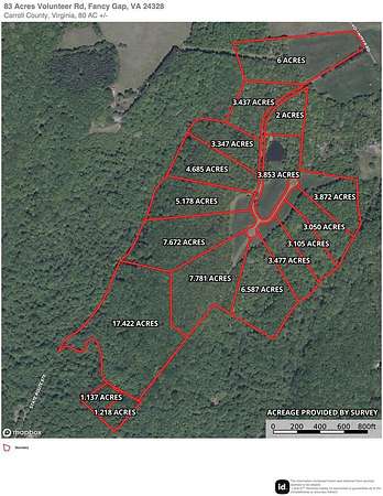 77S Exit 8: Turn Left on Chances Creek Rd. Go to the end, and turn right on Fancy Gap Hwy. Continiue a mile to left on Ranger Rd. Go to end and turn left on Blue Ridge Parkway. Go about 7 miles then turn right on Volunteer Rd. Property is on the right. See GIS and Sign for entrance.