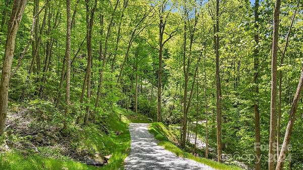 From Brevard, take Hwy 64 about 15 mi & turn R on Hwy 281 N (Blue Ridge Rd). Follow 281 for 12 mi. Turn R onto Vess Owen Rd. Go 0.8 miles and turn R at sign for "Wolf Lake Estates". Go .1 mi, property on left to end of road. From Sylva NC, follow Hwy 107 through Cullowhee. After about 12 miles, turn L on Hwy 281. Stay on 281 for about 13 mi & turn Left onto Vess Owen Rd after lake. Go 0.8 miles and turn R at sign for "Wolf Lake Estates". Go .1 mi, property on left side of road. It starts near the power box and goes almost to end of road on left hand side. Can also be accessed from Von Trapp Lane.