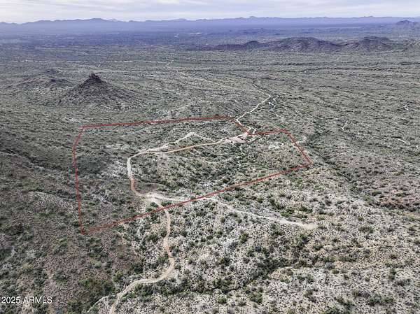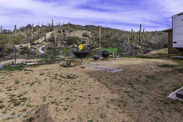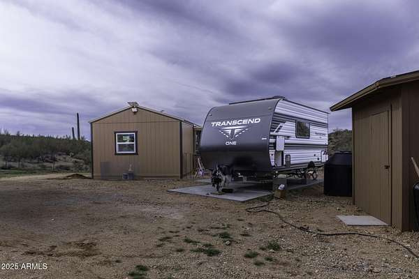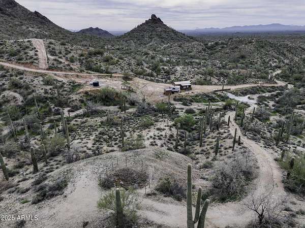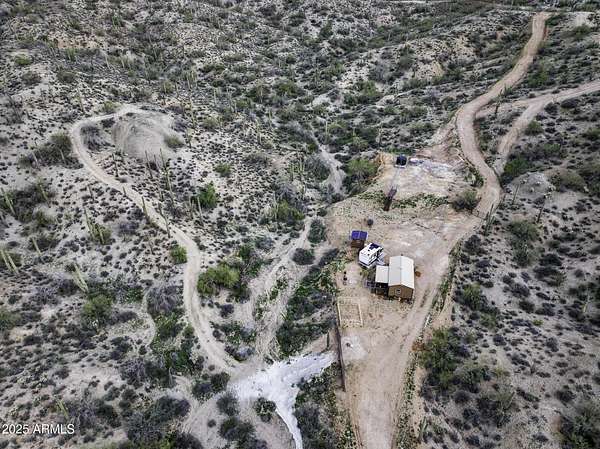 Discover a rare opportunity to own 35.48 acres known as the Vulture Mountains Ranch, perfectly positioned in the scenic saddle between the Vulture Mountains and the Constellation Mountain ranges and surrounded by approximately 71,000 acres of BLM land-offering exceptional privacy, open space, and endless exploration. This special off-grid property features a private well powered by solar panels with a 2,500-gallon storage tank, along with a small residence, storage shed, RV on a concrete pad, and a 12' x 12' corral, making it ideal for weekend escapes, recreational use, or a private desert retreat. The entire property is powered by solar, providing energy independence and low operating costs.Enjoy breathtaking mountain vistas, towering saguaros, abundant wildlife, and serene desert beauty in every direction. Adding to its uniqueness, the property includes two patented mining claimsthe Gold Nugget Claim and the Canyon City Claimoffering historical significance and potential value. Recent assay testing indicates the presence of valuable minerals (buyer to verify). Access is convenient via an improved BLM road suitable for 4x4 vehicles, allowing you to enjoy seclusion without sacrificing accessibility. Whether you're seeking a peaceful off-grid getaway, a basecamp for adventure, or a truly one-of-a-kind Arizona property, this desert gem delivers unmatched space, views, and character.