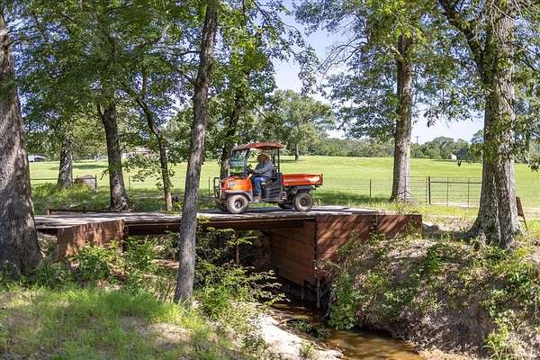 This scenic 43-acre tract features rolling hills, mature trees, loam soil, and a custom bridge over a seasonal creek. Located on a paved county road, it's ideal for grazing, gardening, or building your dream home.
