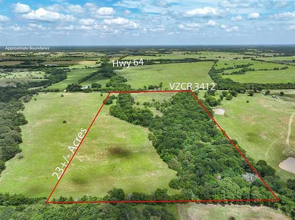 From I-20, take the Hwy 64 exit and go north about 5.6 miles to left onto VZCR 3412. Property begins about a half mile on the right.
