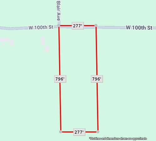Located along W 100th Street in Grant, this approximately 5-acre parcel offers a well-balanced stretch of land with 277 feet of road frontage and nearly 800 feet of depth. Zoned Residential, the property presents a landscape that transitions naturally from open ground near the roadway into areas of established woodland deeper within the parcel. The front portion of the acreage provides clear, open space, while the interior gradually introduces clusters of mature trees and natural vegetation, creating a setting that blends usability with natural character across the length of the property. Electric service is available at the road. The property lies within the Grant School District. Boundaries are shown for reference.