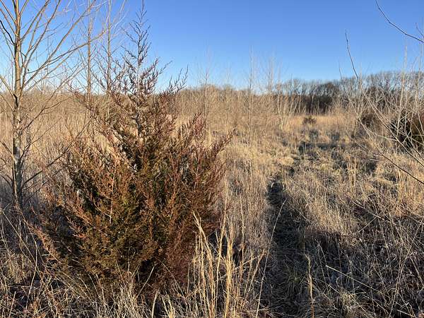 Wolf Creek, as they feed into the headwaters of Blue River. About 25% of the property is a mix of Eastern Kansas hardwoods on the scenic hillside, and the remainder of the property is an open valley floor with butterfly attractions like native thistle and milkweed, as well as native prairie grasses, cedar trees, and young growth birch trees, providing attractive habitat to birds, deer, and other wildlife. Located on a dead end road, this property offers a private view like no other, with great potential for a pond. Premium small acreage properties like this one do not come available very often!