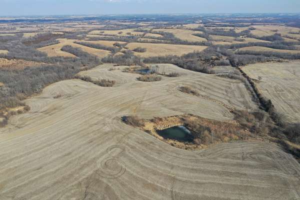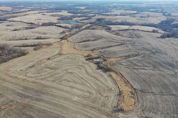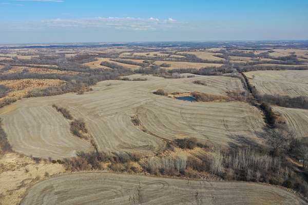 This 190-acre tract in northwest Harrison County offers a versatile blend of productivity, recreation, and future potential. With 145.7 acres currently in row crop production, the farm provides strong income opportunities, while an additional 42 acres of grass, waterways, and timber add diversity and natural beauty. Four ponds are scattered across the property, enhancing both livestock and wildlife value, and the low annual taxes of just $384.62 help make ownership even more attractive. Gravel road frontage along one side ensures easy access, and rural water and electricity run along the west boundary for added convenience.