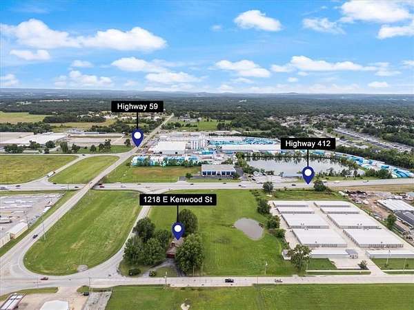 5 Acres w/ Hwy 412 Frontage & Development Potential! Incredible opportunity to own 5 flat, usable acres feat approx 400 feet of Hwy 412 frontage and extending over 600 feet deep to E. Kenwood Street. Property offers potential access from 3 sides, making it an ideal site for future commercial development. Currently zoned residential/agricultural, the land includes a well-maintained home built in the late 1970s--livable and ready for use as a monthly or nightly rental. Property is level with proper drainage and utilities available at the street. Key Highlights: Hwy 412 visibility & frontage (~400 ft);