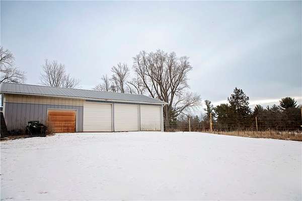 Welcome to Country Living! This 3 bedroom and 1 bathroom home is situated on 42.6 acres of land and is less than 10 minutes away from Eau Claire! Properties and opportunities do not present themselves like this often; here are some details. This property is roughly 25 acres of pasture and/or tillable land with the rest being wooded with a creek running through to bring in all the wildlife. The farm and fencing is set up for horses, goats, pigs, chickens, and bees at the moment which is perfect for the hobby enthusiast or someone looking to live off the land. You'll find many black caps and grapes along the fence lines. The beautiful barn is over 100 years old, there is a 30x50 4 car garage with additional workshop/storage space, a chicken coop, an outdoor dog house, and 2 pig outbuildings. There also is a fenced in 80x40 garden with solar electric. The house, has been renovated with a new roof, windows, and siding (21), new flooring, an updated kitchen (25), new water heater (24)