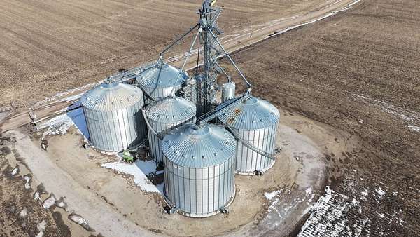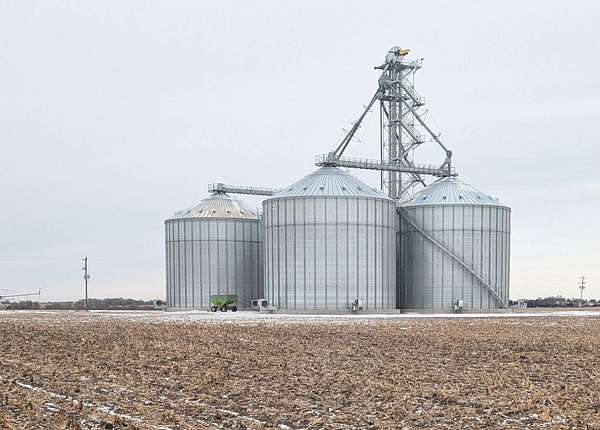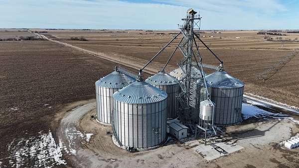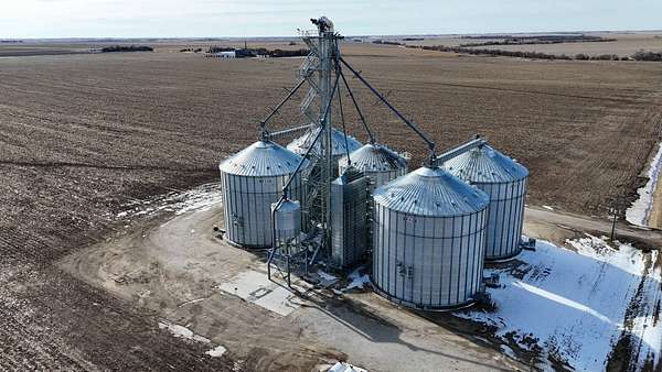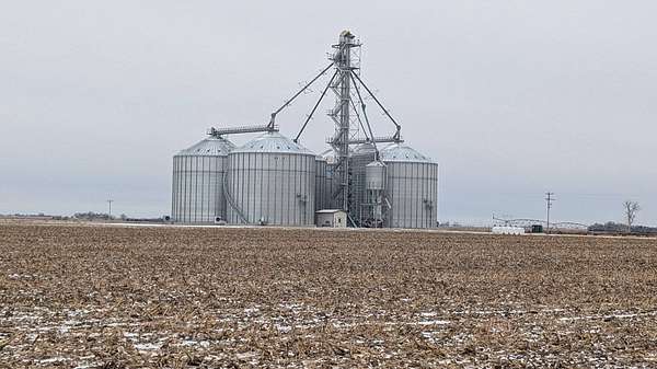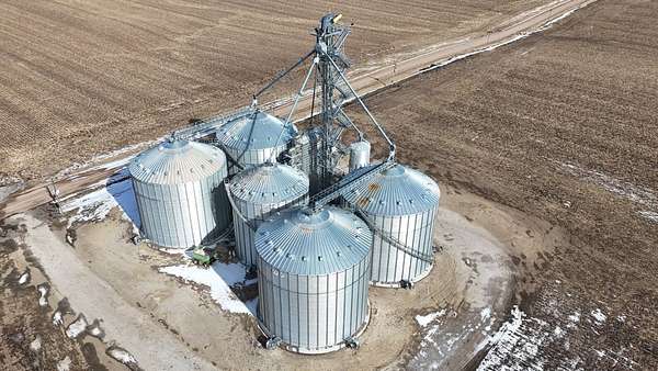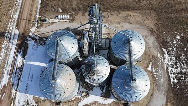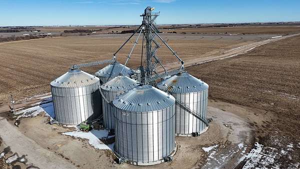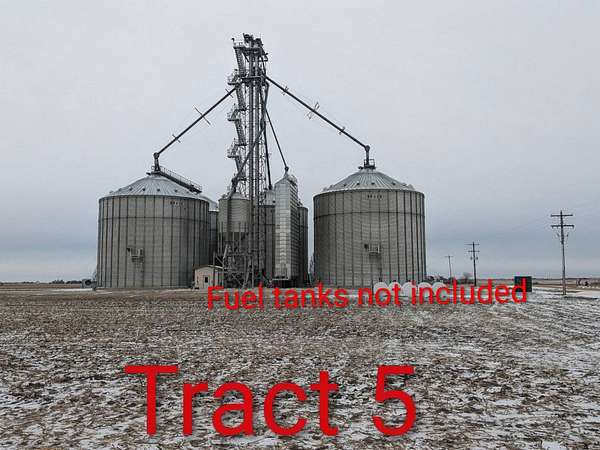 4 Total Brock 60' commercial grain bins with heavy commercial roofs, bins have 10" unloads with power sweeps, roof exhausters, full temp cable system with remote monitoring, total of two 25hp centrifugal fans with full floors, two ring doors with tri-core flooring with spiral staircase that two 60' bins share with roof handrails. The 2 east bins are equipped with side draw unloads. Approximate capacity of 516,000 bushels 1 total Brock 48 commercial grain bin with heavy commercial roof, bin has 10" unload with power sweep, roof exhauster, full temp cable system with remote monitoring, total of two 25hp centrifugal fans with full floor, two ring door with tri-corr flooring and spiral staircase with roof handrails and peak platforms. Bin is used as wet bin ahead of the dryer or as storage. Bin was designed as a working bin and designed for multiple unloads a year. Approximate capacity of 76,500 bushel Super structure with overhead load out bin, ladder access, truck platform and remote- control gate for easy truck fill, overhead equipped with secondary unload option. Overhead is equipped with high and low sensors for fill applications and automation. Approximately 3,000 bushels 12x12 towers with switch back staircase, includes two access platforms for legs and distributor. 12.5k BPH commercial wet receiving leg, full liner package, large inspection sections and AR intake hoppers. 5.5k BPH commercial dry receiving leg, full liner package, large inspection sections and AR intake hoppers 2 total 13k BPH roof drag conveyor with AR inlets and discharge spouts. Drags are placed in catwalks for easy access from bins to conveyors. 16" dual swing distributor, manual controls. Lined inlets, swing spouts and ducts. Equipped with 16" heavy wall downspouts, sync valve, overflow valve, and cushion boxes 12.5k BPH commercial drive over receiving conveyor, AR discharge spout lined, dual dumps with heavy duty grates with grate covers 2 total 5.5 BPH reclaim conveyors with easily removable inlets and AR discharge spouts 8" grain pump from dryer to dry receiving leg for gentle grain transfer Neco 24380 Natural Gas 24 tier dryer, conveyor unloads with VFD unload option. Front and rear access platforms with top roof platform. Commander controls with Dryer Master moisture control. Dryer equipped with AGI Sure Track Dryer Manager for remote access to dryer. Screening system to pull fines and small FM on receiving side and loadout side of bin site. Screens corn from receiving side, before and after dryer and also while unloading bin site. Single location for screening collections. This bin site was designed for quick and easy receiving and drying with a load out system with an overhead that is automated to maintain full while unloading bin site and shut off when overhead is full. Bin site is equipped with sync valve to give you the option to maintain your overhead full at all times with dry grain for early delivery if needed in the middle of harvest. The site is designed with dual dump pits so trucks don't have to wait on each other while hauling in or out of the bin site. The bin site is designed to optimize not only grain handling efficiency and ease, but to maintain grain quality while drying with gently grain movement. The infrastructure of a modern grain drying/handling system is sized and designed to expand the overall grain bin capacity many times over for accommodating needs demand. Also, this system is designed to reduce kernel damage while allowing efficient drying needs and gentle handling require by specialty grain such as white corn and others. THIS FARM AND BIN SITE WILL BE SOLD PRIVATE TREATY - THESE PROPERTIES ARE LISTED AND CAN BE SOLD IMMEDIATELY. THIS FARM AND BIN SITE ARE CONTIGUOUS; A SURVEY WILL BE PROVIDED IF THEY SELL SEPARATELY. NOTE; NO SURVEY WILL BE PROVIDED IF THESE TRACTS SELL AS ONE UNIT; TOTAL ACRES is 160.48. TRACT 5 - BIN SITE - 585,000 BUSHELS BIN SITE - WILL BE SURVEYED TO APPROXIMATELY 3 ACRES "IF" SPLIT.