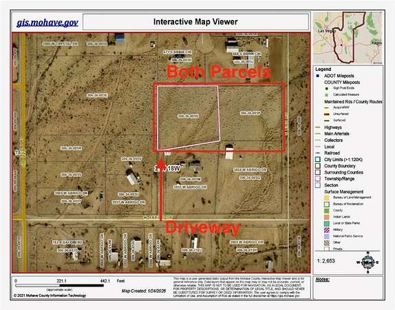 Est $377/mo4.11 acres across two parcels in Golden Valley. Partially cleared with fencing on all four sides except for the driveway entrance. Power is available and water is through Valley Pioneer Water Company. Easy access from Highway 68. Owner financing available at 7.95%. Both parcels included in the sale (306-36-005N and 306-36-005P).