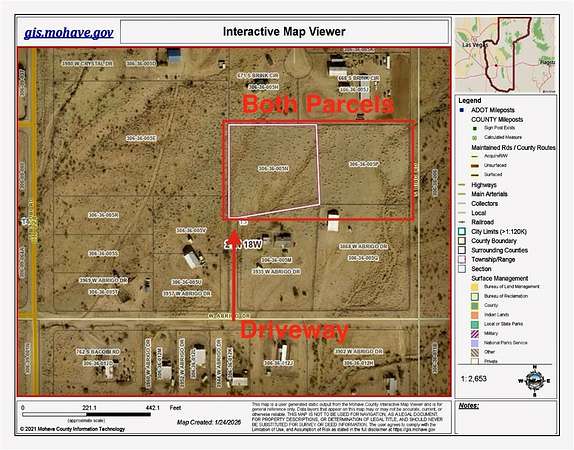 Est $373/mo4.11 acres across two parcels in Golden Valley. Partially cleared with fencing on all four sides except for the driveway entrance. Power is available and water is through Valley Pioneer Water Company. Easy access from Highway 68. Owner financing available at 7.95%. Both parcels included in the sale (306-36-005N and 306-36-005P).