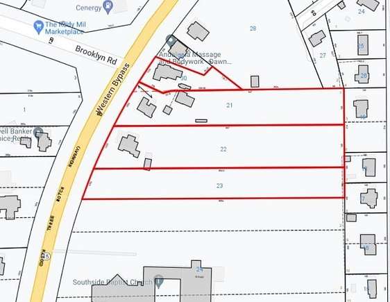 Bypass go south, diagonally across from Fletcher's and next to Southside Baptist Church.
