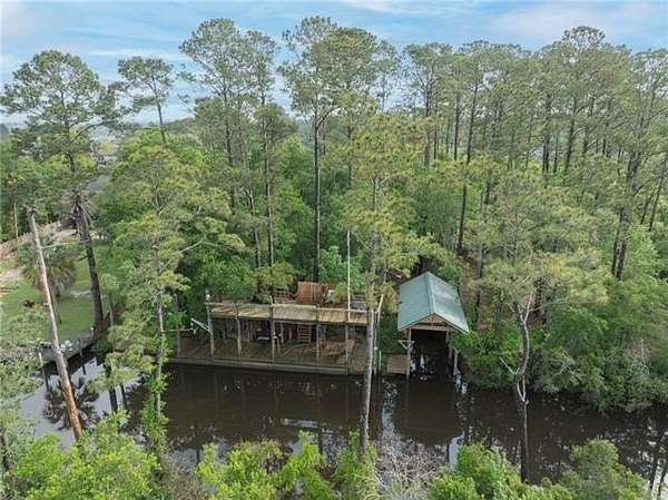 Enjoy direct access on Bayou Bonfouca with an impressive two-story boat dock featuring both a spiral staircase and traditional stairs, a boat lift, and ample space for entertaining, relaxing, or cleaning your daily catch. A lower dock section provides convenient access for a houseboat (not included). Water navigable to Lake Pontchartrain! The property extends to the center of the private waterway, and with a wildlife preserve directly across the bayou, your views—and privacy—are protected for the long term.