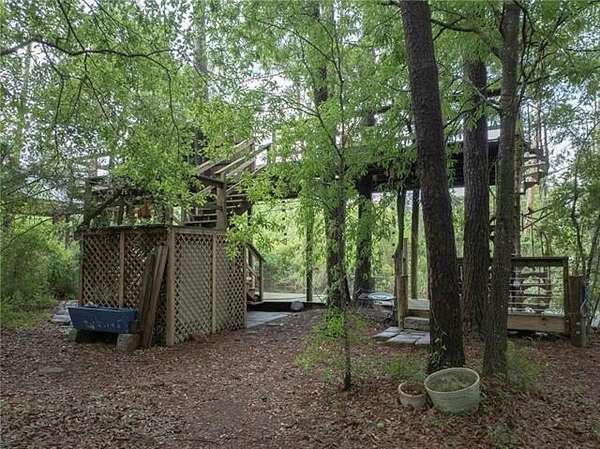 The property offers rear access extending approximately 60 feet from the water, along with a secondary elevated structure designed with two shipping containers flanking a covered platform—perfect for use as a clubhouse. The space below provides ample covered parking or additional storage. Equipped with electricity and water and built one foot above required elevation, the structure presents strong potential for future residential conversion. Property is located to the left of 206 W Camellia Dr. Owner has completed house plans for a 4-bedroom, 4-bath home available upon request. Additionally, approximately 10 truckloads of granite stone, along with various other materials, may be included with the sale.
