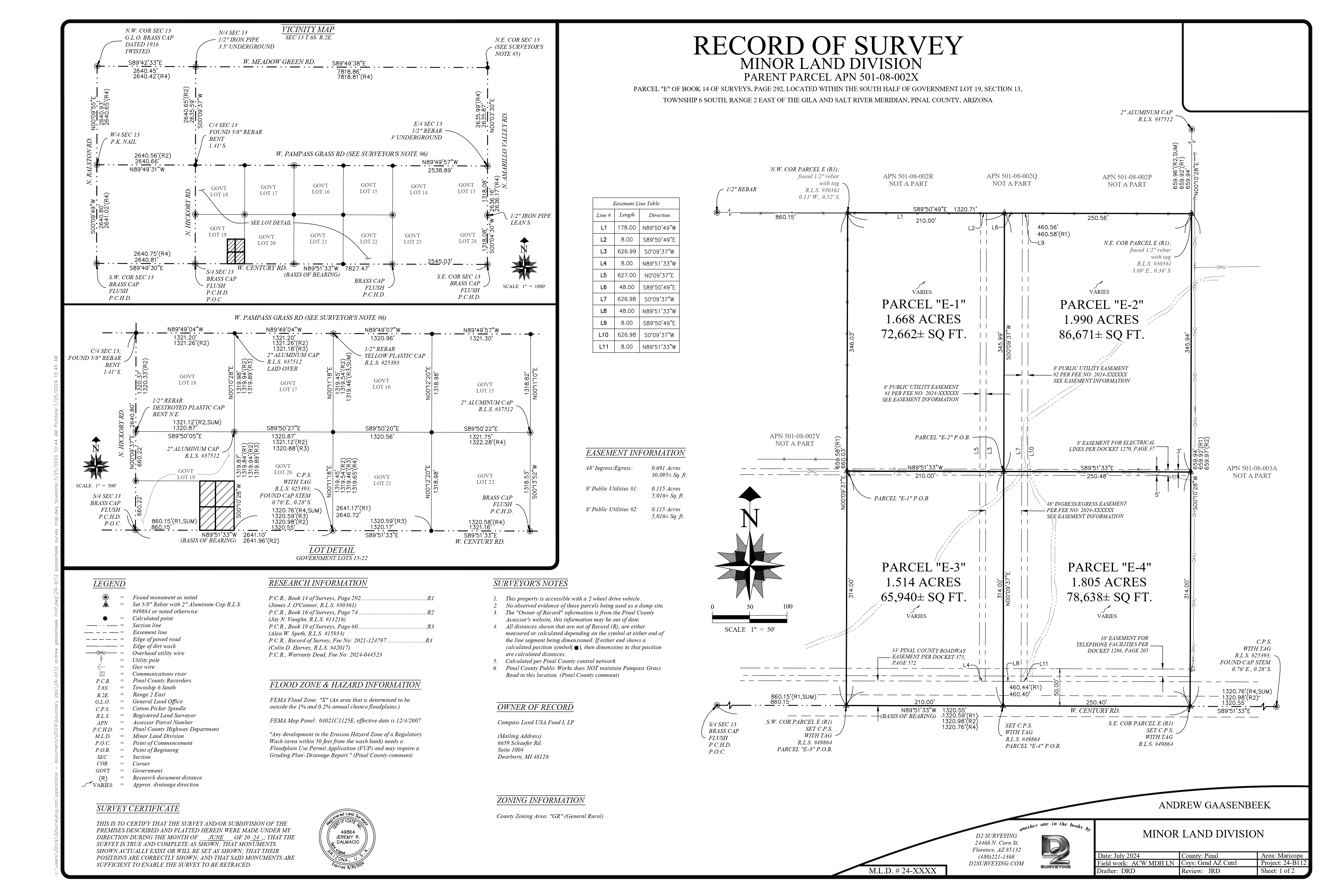 A 1.81 acre PORTION of Parcel E, according to the survey of record in the office of the County Recorder of Pinal County, Arizona, recorded in Book 14 of Surveys, Page 292, being more particularly described as follows:
