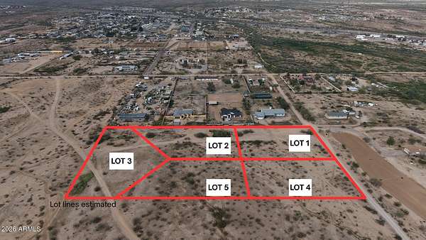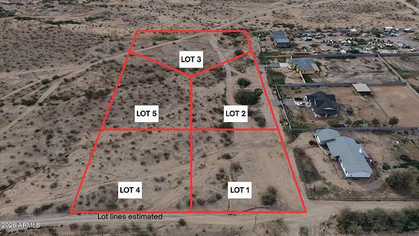Prime vacant land opportunity in the growing Wittmann, AZ area. This 100% usable property offers 5 level acres already subdivided into 1-acre lots, ideal for residential development or investment. Access to West Gate Community Water is available off 215th Street, reducing upfront infrastructure costs. Electricity available. No flood zone. Flat terrain with easy access. Horses allowed, no HOA. Located near expanding businesses and just minutes from Interstate 303, providing convenient connectivity to the Valley. A rare chance to secure developable land in a rapidly growing corridor with strong future potential. FIVE Tax Parcels included: 50336004U-Y.