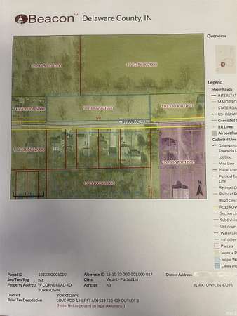 Est $261/moVery rare, wide piece of land in the heart of Yorktown...Country setting close to downtown! This is the ideal time to build your own home on .70 acre. Property can easily be split into two lots. Public sewer, electric and gas are available and the following services are listed (per survey information): AMERICAN ELECTRIC POWER (ELECTRIC), AT&T - DISTRIBUTION, COMMUNICATIONS, AT&T - TRANSMISSION (FIBER OPTIC) CENTERPOINT ENERGY (FORMERLY VECTREN) GAS, YORKTOWN, TOWN OF (SEWER, WATER) Needs private well installed. Most recent survey is on file.