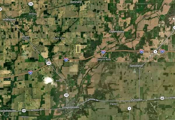 Fantastic income-producing farm in Henry County, IN - approximately 81.52 contiguous acres just north of Knightstown, near I-70 and southwest of Greensboro. This well-located tract offers excellent access with roughly 1,330 feet of frontage on W 550 S and approximately 2,650 feet along Kennard Road. Strong yield history and easy access make it ideal for an expanding farming operation, a conservative investor, or a 1031 exchange candidate. Key features +/- 81.52 contiguous acres with dual road frontage for easy field access and equipment movement Prime central Indiana location - minutes to I-70, Knightstown, and regional grain markets Proven production history, attractive to cash-rent tenants or owner-operators Excellent shape and layout for efficient row-crop farming or future field reconfiguration Solid long-term investment potential; suitable for consolidation into an existing operation or a passive income asset Additional benefits Multiple access points reduce travel time between fields and make logistics simple for planting/harvest Strong rental demand in the area - easy to lease to local operators Opportunities for diversification: continue row crops, add cover cropping, lease for hunting/recreation, or hold as a land-banking asset Attractive as a 1031 exchange property given size, contiguity, and marketability For more information: call to request soil maps, FSA/CRP records, yield history, current lease terms, and a showing. This is a rare opportunity to acquire highly accessible, productive acreage in a prime Henry County location.