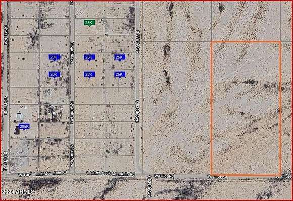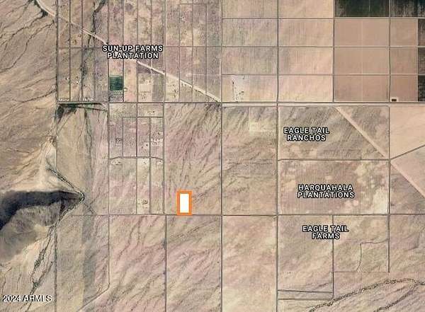 Seller will finance with 50K down- Paving the way to this super nice 20 acre parcel. NO HOA. NO FLOOD. This could be your best investment yet. This lot is next to another 20 acres that may be sold in 5 acre parcels. Lot split surveys for both parcels are available. One acre parcels in this area go for $25k to $35k, so you can see that this might be a great investment! Views of the gorgeous Eagle Tail Mountains and National Wilderness Area. Beautiful farms to the south as well as on your way into town. This rural area has paved roads most of the way and the rest are well maintained. Global Water services the area and there is a water line that runs along the south boundary. Power poles nearby. Signs are up & corners are marked. Come see it today.