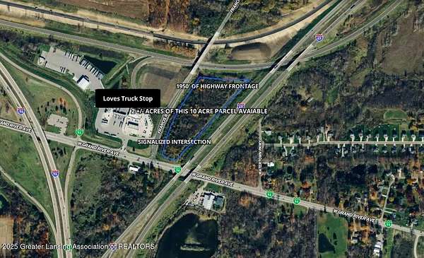 Prime Commercial Land - 2 Acres +/- | Zoned B-2 | I-69/I-96 Corridor - Exit 90 Strategically positioned at the highly traveled I-69/I-96 corridor. This +/-2-acre parcel offers exceptional visibility and accessibility for a variety of commercial uses. Zoned B-2 (General Business), the property is ideally situated directly across from the busy Love's Truck Stop and in close proximity to Flying J, attracting consistent traffic from both local and interstate travelers. With daily high vehicle counts and immediate highway access, this site presents a unique opportunity for businesses seeking maximum exposure. Its close proximity to Lansing and surrounding areas further enhances its appeal for retail, hospitality, or service-oriented developments. Key Features: +/-2 acres of level, developable land Zoned B-2 - General Business Located directly at I-69/I-96 Exit 90 Across from Love's Truck Stop, near Flying J High traffic count and excellent visibility Convenient access to Lansing and surrounding markets Whether you're looking to establish a national brand or a local enterprise, this location offers the visibility and infrastructure to support long-term success.