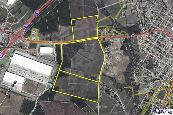 Rare opportunity to acquire 319.64+- acres of industrial/commercial land located less than one mile from I-95 (Exit 190) and in close proximity to the Inland Port Dillon. This large, contiguous tract offers approximately 252+- cleared acres and 67.6+- wooded acres with generally level topography and excellent development potential. The property features approximately 5,500 feet of frontage along Highway 34 and is serviced by available public utilities, including water, sewer, natural gas, and electric. The site is subdividable and suitable for a variety of industrial and commercial uses, including distribution, logistics, warehousing, manufacturing, industrial park development, or build-to-suit projects. Strategically positioned for regional and interstate access, this location provides convenient connectivity to I-95 and surrounding markets while maintaining close access to Inland Port Dillon. Zoned Rural with permitted industrial and commercial uses. Possession is negotiable.