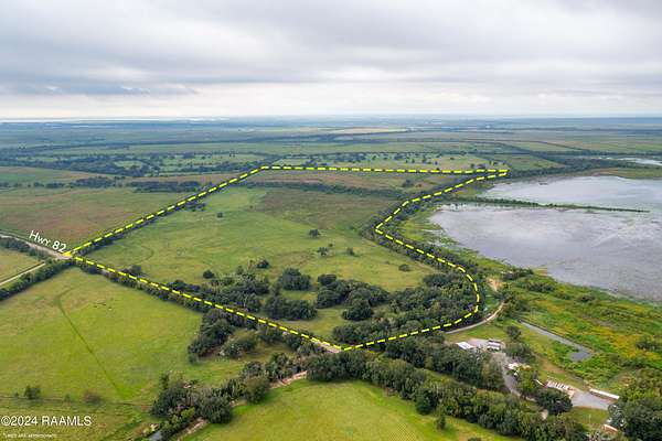 From Abbeville head South on Hwy 82, continue on Hwy82 and turn Right in Esther at the caution light from Hwy 82 to Hwy 82. Continue down Hwy 82 until you cross the 7th ward canal bridge. The property will be on the Left after the bridge. Access to the property is a gravel gated point after the 7th ward canal bridge on the Left.