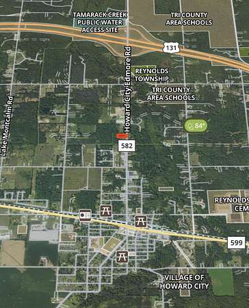 From Howard City head W on M82 property on S side of the property