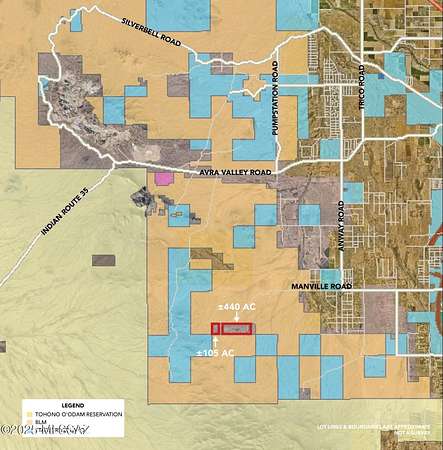 This exceptional +/-545 acre property surrounded by Ironwood Forest National Monument showcases the breathtaking beauty of the Sonoran Desert, featuring vibrant floral landscapes, majestic Ironwood and mesquite trees, abundant saguaros, and native grasses. Bordering and surrounded by protected government land, including the Ironwood Forest, it offers a peaceful and private retreat. Just 45 minutes from downtown Tucson and 30 minutes from shopping, this off-grid property provides both seclusion and convenience. Additional acreage is available, with the option to buy up to 445 acres or purchase smaller parcels of 105 or 220 acres. Seller financing is available. 2 parcel codes included in the sale. 208-38-019D and 208-38-019C. Contact the broker for a detailed marketing brochure