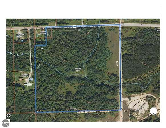 FANTASTIC 39 M/L Acres North of Mio! This square parcel, less an acre out of the NW corner, is mostly wooded, rolling and has frontage on both Miller and Gerber Roads. Excellent for building with power readily available and numerous spots for a home or recreational get-a-way! Cherry Creek begins not far away and the tiny creek meanders through the property with a second tiny feeder creek from the north. Many neighbors have ponds so the potential is there for something cool. A super mix of some open, some low, loads of thick fir, spruce and even some cedar, along with poplar wooded high ground. Excellent for all types of hunting with winter habitat for white tail, grouse and rabbits. Just 4-5 miles to either Mio or Fairview and the AuSable River and minutes away to loads of State and Federal Forest. With less and less vacant land all the time, this could be the property for you!