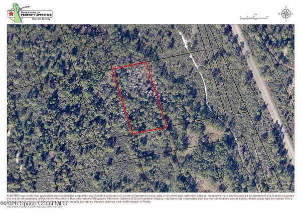 From US HWY 1 go west on Aurantia Rd. until you come to the I-95 overpass. Then take the rail trail 1.5 miles north. Property is about 500 to 600 ft west of the rail trail. GPS: 28.7469 by 80.90179