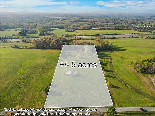 Est $581/moGORGEOUS piece of property with great building just off Hwy 421 and close to I-77; originally part of larger tract but has been separated by recent survey; land is leased through Dec 1, 2026; GIS does not reflect how it will be sold- this is the parcel aross the road from the house that used to be part of the bigger parcel shown on GIS; 5.497 acres per deed; property across the road is listed 1214714