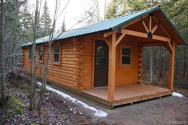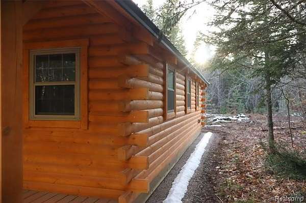 Remarkable 10-acre parcel that offers a unique opportunity for a Northern escape. This property borders the Federal Hiawatha National Forest on two sides, south and east, providing access to thousands of acres of state and federal land, perfect for endless Upper Peninsula adventures. The parcel includes a brand new 14'x36' full D-Log cabin that is ready for immediate use. The cabin is wired and features a new outhouse, a generator plug, a ceiling fan/light, and a private bedroom with brand new bunk bed set. The ceiling is insulated with foam board under finished pine tongue and groove, and the layout includes a main living/kitchen area in addition to the bedroom. The location offers excellent access to recreational activities: * Approximately 1 mile from groomed snowmobile and ATV trails. * 2 miles from Whitefish Bay, Lake Superior. * 6 miles southwest of Brimley, MI. For convenience, the property is: * 1 hour from Mackinaw City. * 30 minutes from Sault Ste. Marie. * Within 15 minutes of Brimley, Wild Bluff Golf Course, Brimley State Park, and the historic Point Iroquois Lighthouse. The area also boasts modern conveniences, with access to electricity, phone, DSL, and fiber optic internet. With year-round road access and stunning natural surroundings, this is an exceptional chance to own a piece of the Upper Peninsula's unmatched beauty. Please note that this property is agent-owned. Well and Septic permits will be needed for septic system hook-up and well water. Power and internet is at the road.