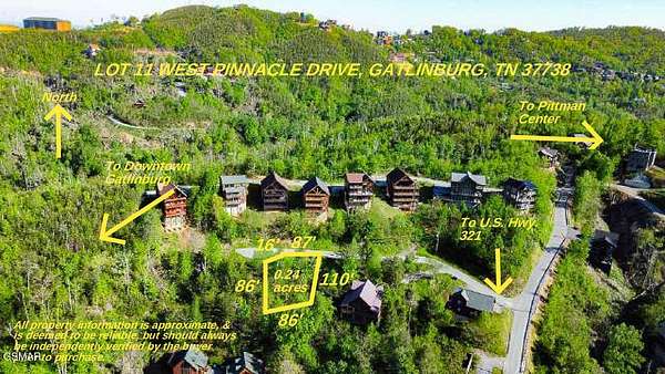 Lot 11 W Pinnacle Drive in Gatlinburg is an Ideal location for a permanent residence, second home or an overnight rental in a beautiful and scenic location. Situated off Highway 321 in Gatlinburg's East Parkway area, lot 11 Pinnacle Drive offers all city services and amenities available such as trash pick up, water, sewer, natural gas and high speed internet. The property is also near the end of a cul-de-sac with minimal drive-by traffic. With increasing regulations on septic system placements, having sewer is paramount for a six-bedroom build. In addition, rentals with a Smoky Mountain view rent best. Lot 11 W Pinnacle provides an unobstructed view of Mount LeConte plus offers sunrise views to the east. The cabin build would never have the view degraded by future nearby cabin development. Lot 11 Pinnacle Drive is located off the East Parkway permitting access to restaurants, trolly stops, grocery shopping, plus is handy to the all-important Dudley Creek bypass to navigate around Gatlinburg's high visitation traffic. In addition, this cabin is not in an HOA controlled subdivision. Resent market activity is trending toward favoring lots with sewer access, which are scarce. Lot 11 Pinnacle is an ideal location with an excellent view - come see it today before it's too late!
