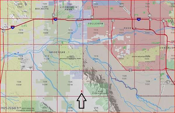 Take Estrella Pkwy South to Willis Rd. Southwest to Rainbow Valley Rd. South to Riggs Rd. East 7.5 miles to the Southern boundary of the property.