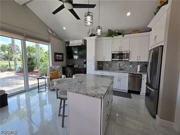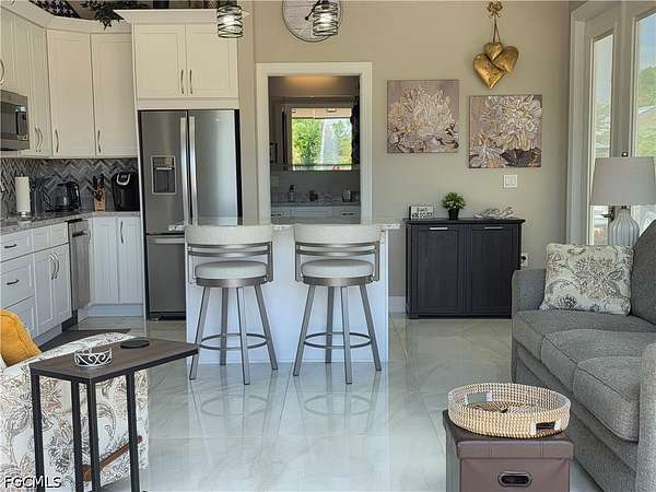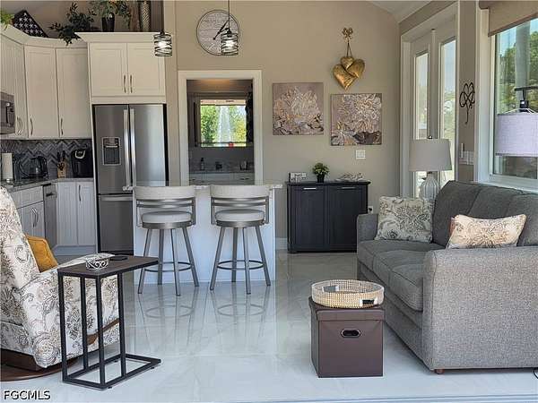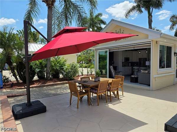 Lot 29 offers an exceptional blend of luxury, comfort, and lifestyle in a beautifully designed setting. Begin your mornings with a peaceful cup of coffee while taking in stunning sunrise views, setting the tone for another perfect day in paradise. This impressive 16x24 coach house embodies high-end elegance with a thoughtfully crafted interior and luxurious finishes throughout. Expansive sliding glass doors seamlessly connect the indoors with Florida's lush natural beauty, creating a bright and inviting living space. Inside, you'll find stainless steel appliances, granite countertops, and an elegant island that anchors the kitchen. The full bath includes an oversized vanity and a beautiful walk-in shower. The coach house is fully equipped with a washer and dryer, sleeper sofa, recliner, credenza, trash and recycle bureau, mini-split A/C, and television. A hidden storage loft adds both functionality and charm. Step outside to an expansive, beautifully furnished patio designed for both relaxation and entertaining. Enjoy two large lever umbrellas, a wooden dining table with six chairs, a square table with four chairs, and an additional seating area featuring a sofa, loveseat, two recliners, and footstools. Outdoor storage containers provide added convenience. Ideally located just a short walk from the Creations Clubhouse and the RC car racetrack, this lot places you near unique and engaging activities. This golf-cart friendly community offers an unmatched lifestyle, including an Olympic-size pool, two hot tubs, shuffleboard, bocce, horseshoes, and a putting green. Spend afternoons at the poolside bar enjoying tropical drinks and meeting new friends or visit the Pool Clubhouse for fitness and social activities. There's always something going on at the River Clubhouse, from Mah Jongg and billiards to dancing, bingo, trivia, and bunco nights. And don't miss the charming Saturday morning model train display - a nostalgic favorite as trains wind through miniature villages, bridges, and tunnels. Peaceful moments are just as easy to find. Relax by the gazebo or head out on the river thanks to easy boat dock access. Trailer and boat storage are available on-site, and the entire community is pet-friendly - making it perfect for those who want to bring their four-legged family members. Lot 29 is more than just a property, it's a lifestyle filled with relaxation, recreation, and connection. Don't miss the opportunity to make this exceptional retreat your own.