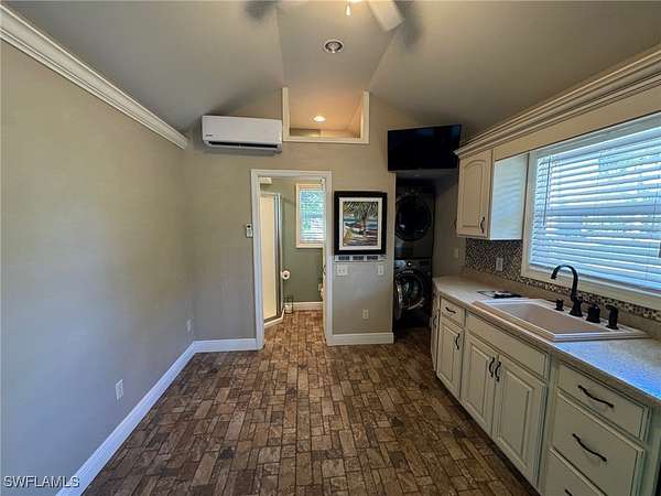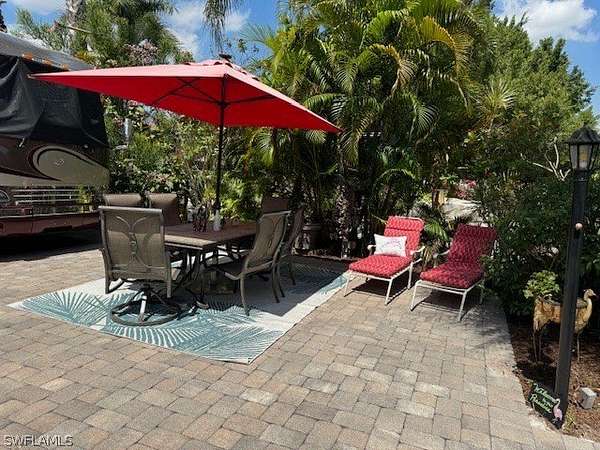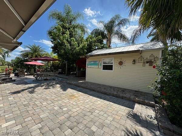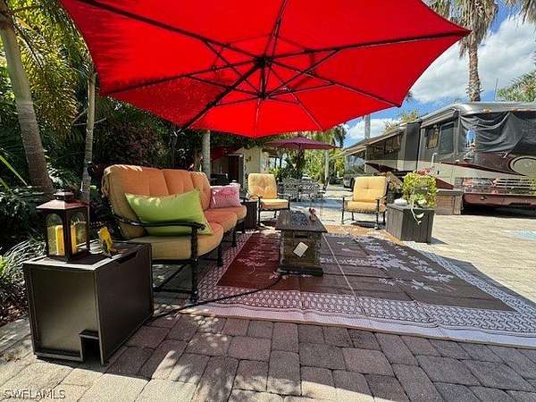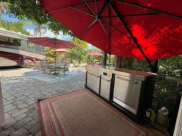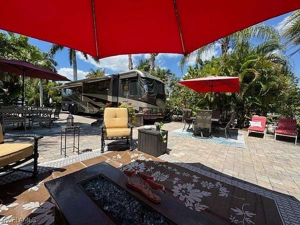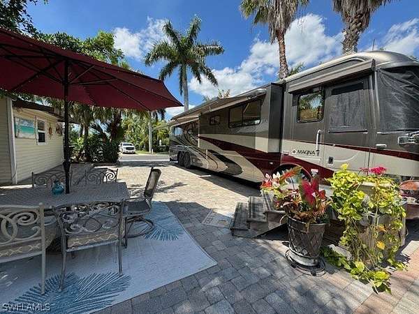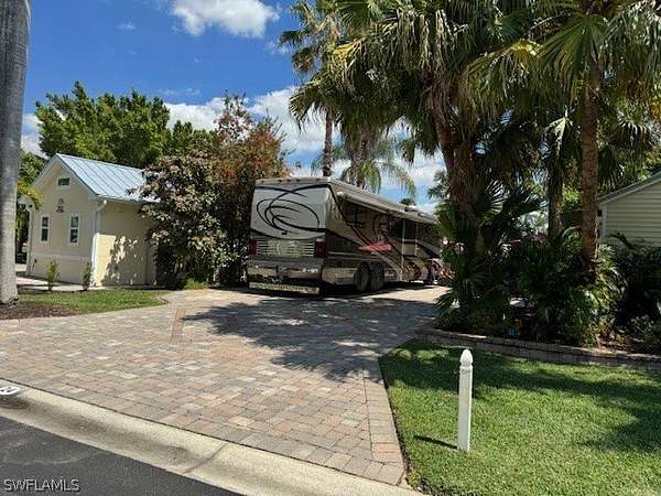 Lot 24 East-Facing Waterfront Gem in RiverBend. This is an incredibly rare opportunity to own a waterfront lot with breathtaking views of both Welcome Lake and Turtle Lake, each with a beautiful fountain. This pull-in lot features pavers and it is surrounded by lush, mature landscaping, providing both privacy and an abundance of shade beneath the towering trees.The spacious 11' x 17' coach house offers endless possibilities, whether you envision it as a private office space, a cozy sitting and dining area, or a welcoming guest retreat. With its kitchenette, washer and dryer, and efficient climate control, it provides both comfort and functionality to suit your needs. It features a well-appointed kitchenette, a convenient washer and dryer, and a shower with instant on-demand hot water for added comfort. A cleverly hidden mini-fridge, tucked behind framed artwork, adds a unique touch of style and functionality.. There is ample space for a large sofa or dining table, making it a versatile retreat. The elegant banyan tree provides a canopy of shade during the day, creating the perfect spot to lounge and unwind in the cool, dappled light. As evening falls, the space transforms into a magical setting for dining under the stars, where the warm tropical breeze and serene surroundings make every night feel like a getaway. Please note: Some personal property in photos will not convey with the purchase. Experience the Best of RiverBend. RiverBend is more than just a luxury motorcoach resort-it's a true paradise for outdoor enthusiasts and those who love an active, social lifestyle. The community is set among lush tropical landscaping with majestic, mature trees that provide both beauty and shade, creating a serene and picturesque environment. At the heart of RiverBend is the lively poolside cabana bar, a favorite gathering spot where residents come together to unwind, share stories, and enjoy delicious drinks in a relaxed, island-style atmosphere. Whether you're sipping a cocktail with friends or taking a refreshing dip in the resort-style pool and hot tubs, there's always fun to be had. The amenities here are second to none, including a spacious clubhouse, putting green, bocce, shuffleboard, and horseshoes. Stay active with the state-of-the-art exercise room and eight pickleball courts, or enjoy unique activities like the R/C racetrack, R/C boating club, and the charming hobby train under the oaks. A private boat ramp provides direct access to the scenic Caloosahatchee River, perfect for boaters looking to explore the waterways. RiverBend is a welcoming, pet-friendly, golf cart community that offers an unparalleled lifestyle filled with recreation, relaxation, and lasting friendships.This is a must-see property in one of Florida's most sought-after luxury motorcoach communities.