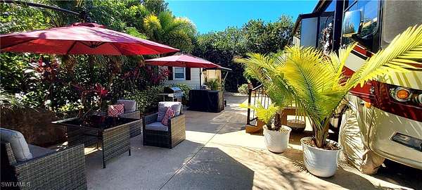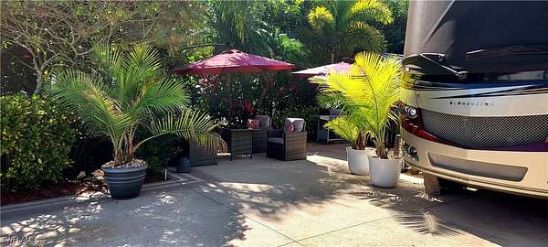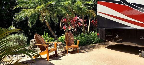 Don't let this amazing lot pass you by. LOT 32 is surrounded by mature tropical landscaping, has a textured concrete pad and only 1 neighbor. On this lot privacy abounds, so relax in your private backyard while enjoying the beautiful Florida weather or have your morning coffee nestled amongst the trees. Need extra parking, the RC racetrack lot is right next door. Going to a class at the Creations Center, it is directly across the street. Need to check your mail, the Welcome Center is a short stroll from your front door. Lot 32 has a beautifully finished 10'*14' coach house that is equipped with a washer and dryer, refrigerator/freezer and plenty of storage. The coach house also has a lovely bathroom with a frame less glass shower door, a/c, ceiling fan and awning. Lot 32 is a bit larger than a standard lot in Riverbend Motorcoach Resort, at .12 acres it is 100'*50'*100'*53' in the back. This allows you plenty of room to upgrade to a 16'*26' coach house in the future. Riverbend Motorcoach Resort is a class A only Resort located in Labelle Florida on the Caloosahatchee River. This amazing resort has something for everyone from the incredible amenities to the amazing activities. At the pool complex you will find not only a resort style pool but also 2 hot tubs, an open air cabana bar, shuffle board courts, bocce ball and putting green. Inside the pool clubhouse there is a fully equipped exercise room, showers, laundry facilities, all purpose room that is great for game night and a kitchen with full size appliances. Nestled in the oak trees along the river is the river clubhouse where you will find a full service bar, multipurpose room, billiards room, library, stage and a professional style kitchen. A short stroll down the boardwalk from the river clubhouse brings you to the private boat ramp with docks along the Caloosahatchee River. There are also 8 pickleball courts, 2 dog parks, RC racetrack track and Creations Center. This golf cart and pet friendly resort is teaming with activities during the winter season. Association dues are paid quarterly.