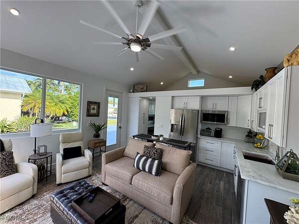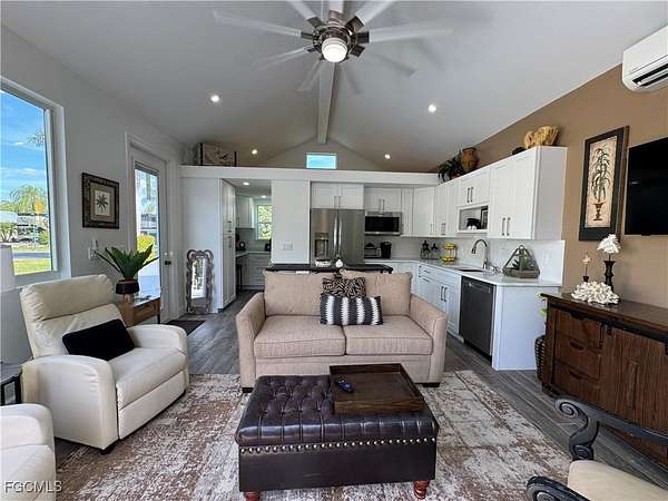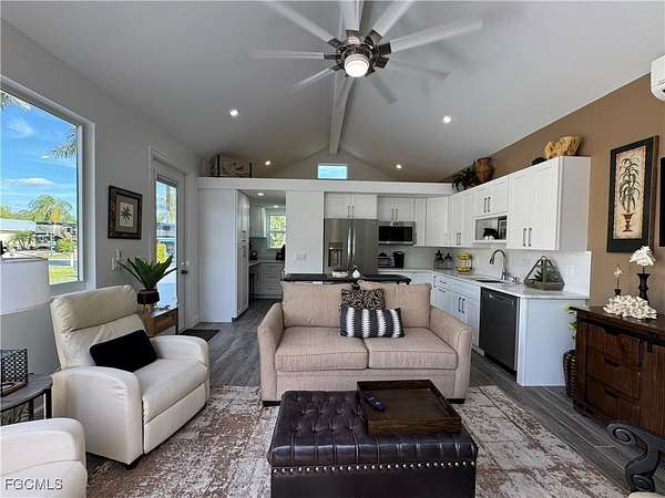 Discover the Essence of Island Living with a hint of West Indies vibes at RiverBend! Step into this Brand New 16 x 24 coach house, a turnkey treasure offering everything you could ever desire. From the moment you arrive, you'll be captivated by the privacy and charm of this property, complete with a spacious back patio and lanai perfect for entertaining. Enjoy the comfort of stylish outdoor furniture, ideal for gatherings with family and friends. The interior is bathed in natural Florida sunlight streaming through sliding glass doors, while screens keep the tropical breezes flowing and pesky insects out. The kitchen is fully equipped with gleaming stainless steel appliances, ready for any culinary adventure. Relax in the comfortable living space, complete with a versatile wine or coffee bar, an office area, and a bright, airy bathroom with elegant open shelving. The cozy loft adds a charming retreat, and the full-sized washer and dryer make everyday living a breeze. The concrete pad is freshly painted and nestled in a tropical paradise, the home's back garden is a serene haven, enchanting by day or night. This gem is not just a house, it's an invitation to embrace an extraordinary lifestyle. RiverBend is a vibrant, pet friendly, golf cart community along the picturesque Caloosahatchee River. Residents enjoy exclusive access to a private boat ramp, perfect for exploring the river's wonders. The community boasts resort style amenities, including a sparkling pool, bocce and shuffleboard courts, and eight year round pickleball courts. The River Clubhouse, with its stunning river views, is a favorite gathering spot, while the Pool Clubhouse offers lap pools, hot tubs, and a cabana inspired pool bar. Stay active on the putting green, horseshoe courts, or in the fully equipped exercise room. Peak season brings even more excitement with billiards, bingo, and a delightful hobby train display under the oaks. This is more than just a community it's a way of life. Don't miss your chance to own one of RiverBend's finest and experience the unparalleled charm of a place that truly feels like home. Welcome to RiverBend, your new adventure awaits! This is also a great investment property for the 2025/2026 season. Please inquire about rentals dates with agent. Owner Financing available.