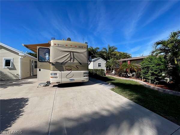 Lot 37 A Luxurious Indoor-Outdoor Living Experience at RiverBend Motorcoach Resort. Discover the ultimate blend of sophistication and comfort with Lot 37, a property perfectly crafted for seamless indoor and outdoor living. Whether you're hosting friends under the stars or enjoying peaceful mornings in your private retreat, this stunning lot offers everything you need for an elevated lifestyle. The brand-new 16' x 24' coach house is a masterpiece of design and functionality. Its vaulted ceilings and impact glass windows create a bright, airy space that feels both luxurious and inviting. The open-concept layout is ideal for entertaining, while the sleek kitchenette with stainless steel appliances and space for a dishwasher adds modern convenience. A versatile multi-purpose room provides flexibility for work or leisure, and a front-loading washer and dryer, along with generous storage options, ensure practicality meets elegance. Step outside to a beautifully landscaped haven, complete with a lanai featuring elegant pavers and a lush, grassy lawn, perfect for alfresco dining, sunset cocktails, or simply unwinding in your own private oasis. Whether day or night, this property invites you to enjoy every moment in style, surrounded by the natural beauty and tranquility of RiverBend Motorcoach Resort. As part of this prestigious community, you'll experience the best of Southwest Florida living. The resort's mature landscaping and serene ambiance set the stage for unforgettable memories. RiverBend's world-class amenities include a private boat ramp, a sparkling pool with hot tubs, and the vibrant, always-popular pool cabana bar, a bustling hub where residents gather to relax and connect. Additional recreational facilities include pickleball courts, bocce, shuffleboard, and a golf cart-friendly layout. Unique features such as an R/C racetrack, an active boating club, and lively clubhouse events provide endless entertainment options. Golf Cart is Negotiable.