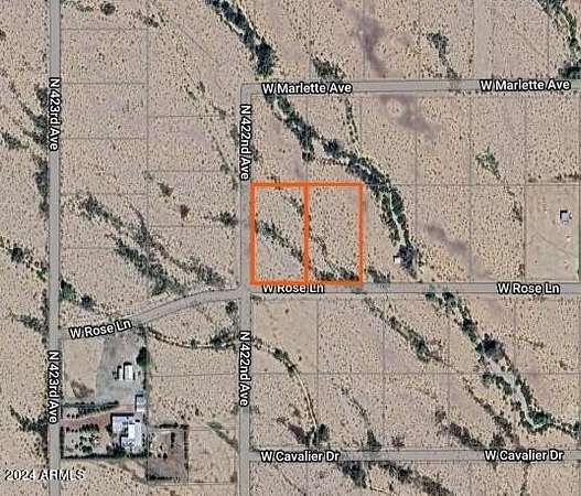 1+ acre lot in the growing community of West Phoenix Estates 5. The price is right but you must also purchase the lot next door. Mountain views in all directions. If you're looking for a parcel with character, this could be the perfect one to build your dream home. Corner lot. Mainly flat but with small washes (or arroyos) running through them adds such a nice feature! It is in a flood zone but do your homework and you should find that the lots are buildable. Easy road access from Rose Lane or 422nd Ave. and proximity to power and water makes this a great value. Get in while prices are low as the path to progress is coming and this could be a great investment for you. Corners are marked- come see both of them today!