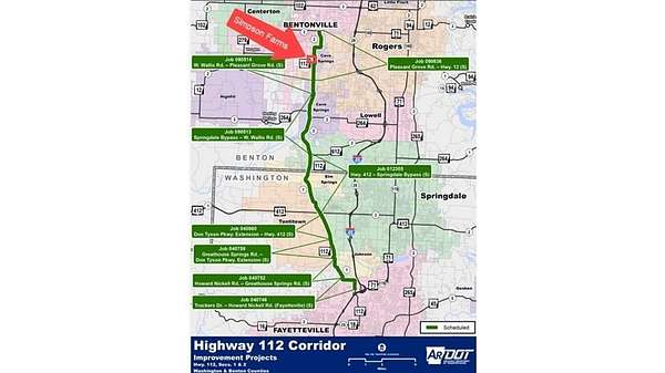At the intersection of W Scoggins Road and Hwy 112 in Bentonville, AR
