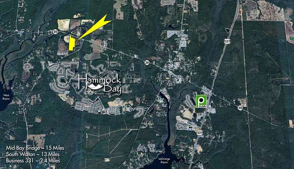 West from Hammock Bay on South side of Highway 20; look for sign and gate. The parcel address partially fronting the subject acreage is as follows: 2377 W ST HWY 20, FREEPORT 32439
