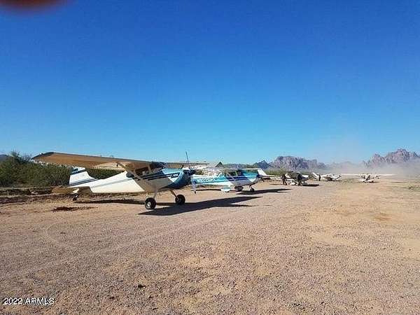 The thrill of flight and the comfort of home can be yours! 3.2 acre parcel of beautiful level land with taxiway easement. Come take a drive today or Fly In! Live in an exclusive community with access to a private runaway. 0AZ1-Airport/Heliport with approx 5000' runway w/displaced thresholds. No restricted airspace overhead, easy in, easy out! Manufactured or site built homes for your Hangar/home or ranch! Fresh air and clear skies approximately 40 minutes west of Buckeye (Phoenix AZ Metro area). No Flood Zone. 320 Acre Airpark is served by Global Water Co & Century Link Communications. Seller Carry. Close to BLM land- Eagletail Mountains, located to the west of Airpark. Well maintained roads, paved most of the way from the highway. Miles and miles of views.