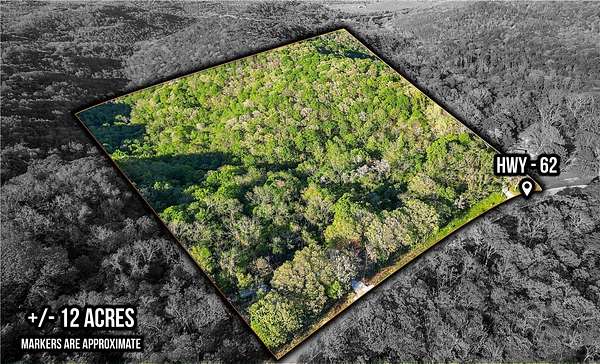 Here is your opportunity to own 12 unrestricted acres along scenic Highway 62 near Eureka Springs. This wooded property features two separate entrances, highway frontage, and two cleared areas surrounded by mature trees, offering privacy and versatile open space. A small natural cave adds to the land's distinct character, and wildlife, including deer, turkey, and fox and bear. Just about a mile away is Opera in the Ozarks, with Devil's Eyebrow Natural Area, Beaver Lake, the White River, and Lake Leatherwood all close by. The surrounding area offers world-class trout fishing, boating, hiking, and biking. Bentonville and Northwest Arkansas's expanding network of trails, shopping, and dining are also within easy reach. Whether you're seeking privacy, recreation, or a long-term investment, this property combines natural beauty, a prime location, and full flexibility in the heart of the Ozarks. Property is agent owned.