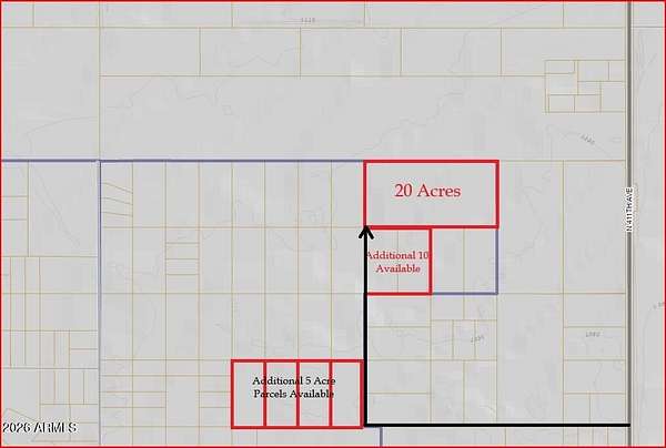 Rare 20-acre R-43 zoned parcel in the Saddle Mountain Ranch area featuring expansive desert and mountain views with flexible residential & rural use. Seller financing available. Power is in the area, check with APS for availability and connection details. Ideal for a custom home, manufactured home, ranch setup, or long-term land hold. Potential for future lot split or rezone to commercial. Seller owns 10 additional acres abutting & 5 acre parcels nearby. Near Hickman's Egg Farm and the beautiful new Saddle Mountain RV Park. Less than 2 miles to the 411th Ave. off ramp! Parcel is located in partial floodplain, do your homework to see it is a buildable zone. Enjoy privacy, wide-open space, and a peaceful rural setting with strong long-term growth potential. Plan to come see this one today!